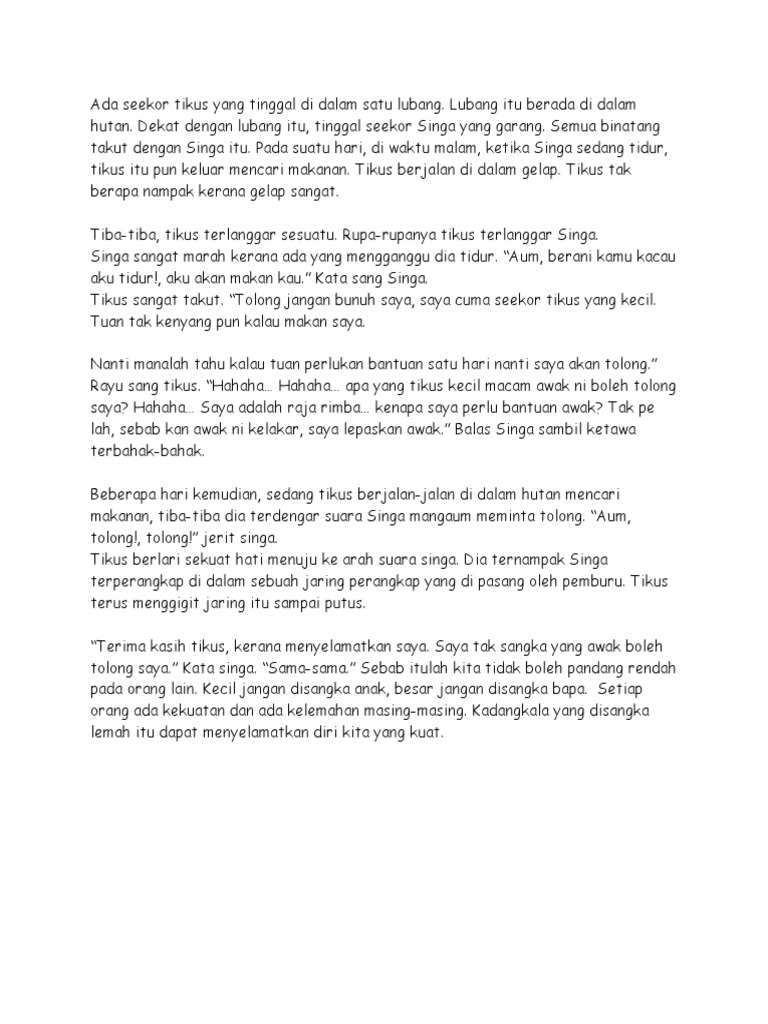 Get unlimited access to this and over 100000. KATAK KURA-KURA DAN ENGGANG. Kisah Sang Singa dan Si Tikus.